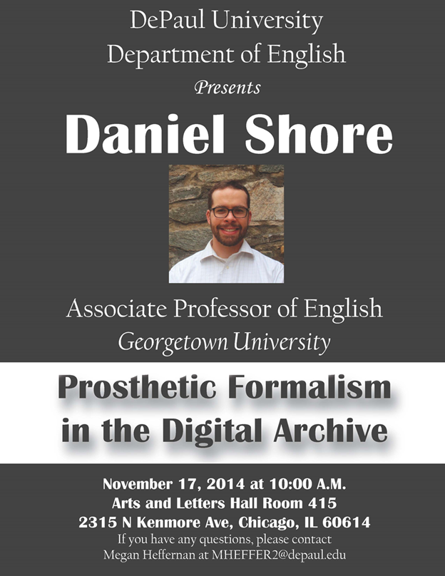 Join Georgetown’s Daniel Shore for “Prosthetic Formalism in the Digital Archive,” a lecture and workshop on digital methods for historical literary analysis.
