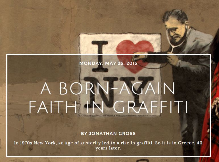 Wilson Quarterly (May 25, 2015) “A born-again faith in graffiti” Congratulations to DePaul English professor Jonathan Gross, who published this piece about graffiti in Greece in the summer 2015 issue of the Wilson Quarterly.