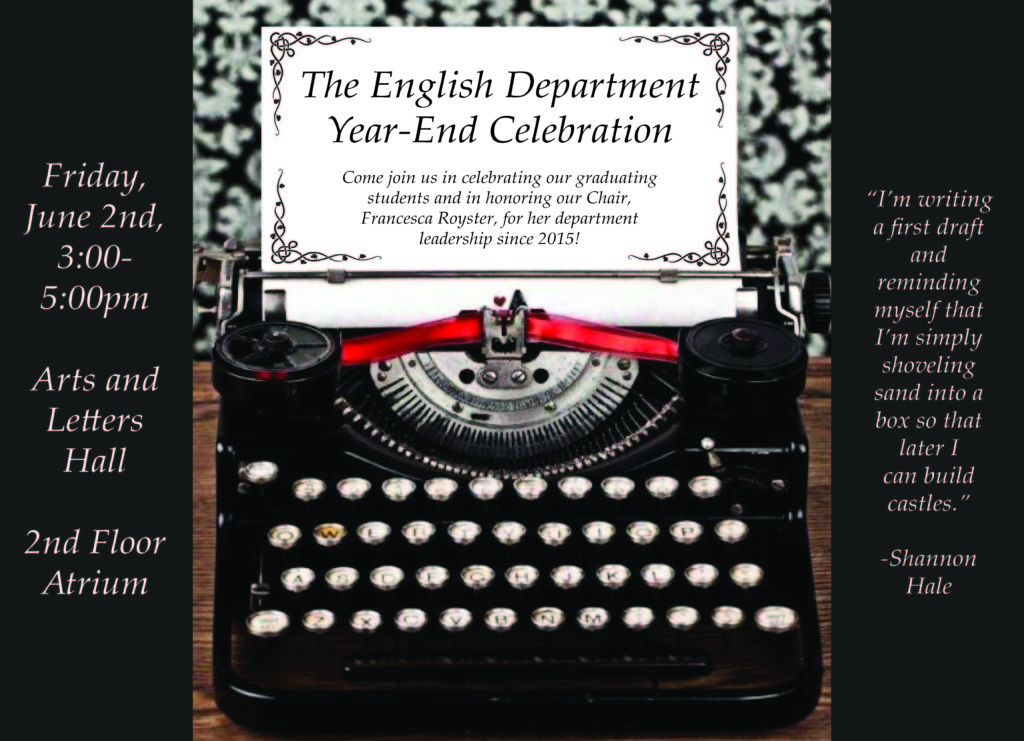 Good news from Kathleen Rooney, who reports that: “Rose Metal Press’s latest book, MONSTER PORTRAITS, has just been reviewed in the NY Times Book Review: https://www.nytimes.com/2018/02/21/books/review/new-science-fiction-fantasy.html?rref=collection%2Fsectioncollection%2Fbook-review&action=click&contentCollection=review®ion=stream&module=stream_unit&version=latest&contentPlacement=2&pgtype=sectionfront “We’ve been around since 2006, and we are regularly reviewed in Publishers Weekly, Booklist, Library Journal, etc but this is our first time–in 12 years!– in the NYTBR.” Congrats, Kathleen! The Department is proud of you!