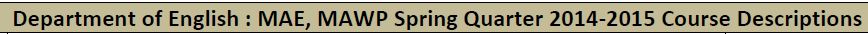 ENG 475 Topics in Comparative Literature: Colonialism and Its Legacy Tuesdays, 6 p.m.–9:15 p.m. Professor James Fairhall MAE: 20th-/21st-Century Requirement; Elective MAWP: Language, Literature, Publishing, and Teaching (LLPT) Requirement; Open Elective View a more detailed course description here, or see below. ENG 475 examines colonialism in its late phase, during the 19th and 20th centuries, and the period of postcolonialism in which we now live. We will look at these two historical phenomena through the lens of 20th-century British literature: novels, two plays, a movie, and four poems. “British” here is broadly defined. Thus we will read works by two Caribbean novelists and… Read Article →