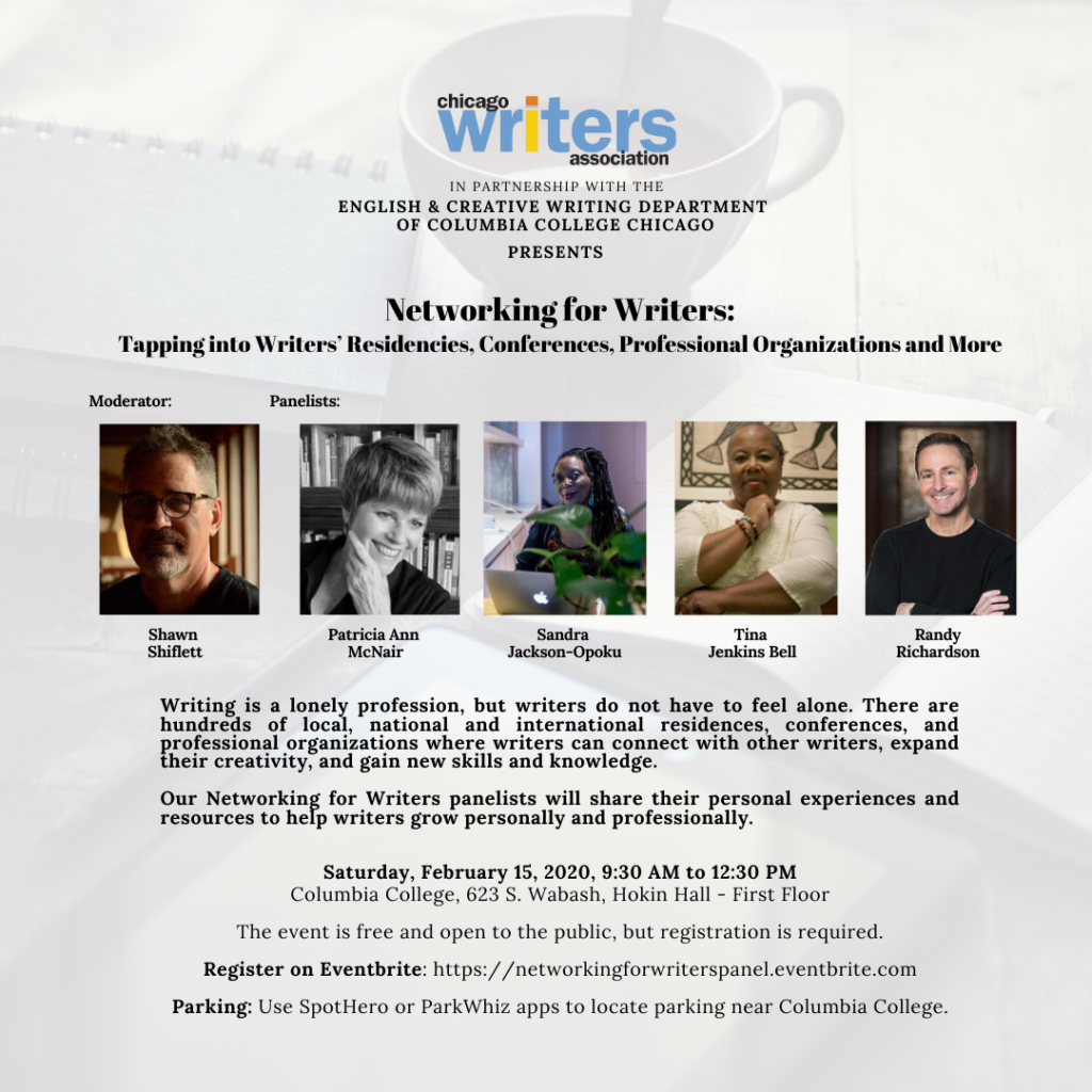 Do you want to expand your network with year? Join Chicago Writers Association at their panel discussion “Networking for Writers Panel” on February 15th with five amazing authors to learn more information about residencies, conferences, professional organizations, and more.   Event Details:  Saturday, February 15, 2020 9:30 am to 12:30 pm Columbia College – Hokim Hall – First Floor 623 S. Wabash   This event is free and open to the public, but you must register to attend.   Want to receive emails about CWA events? Join the mailing list to stay updated on news and events.