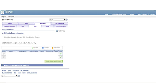 Friday, January 16, marks the last day for students to drop a winter 2015 class without penalty. Classes dropped before January 16 will not appear on the student’s transcript or factor into the student’s tuition.