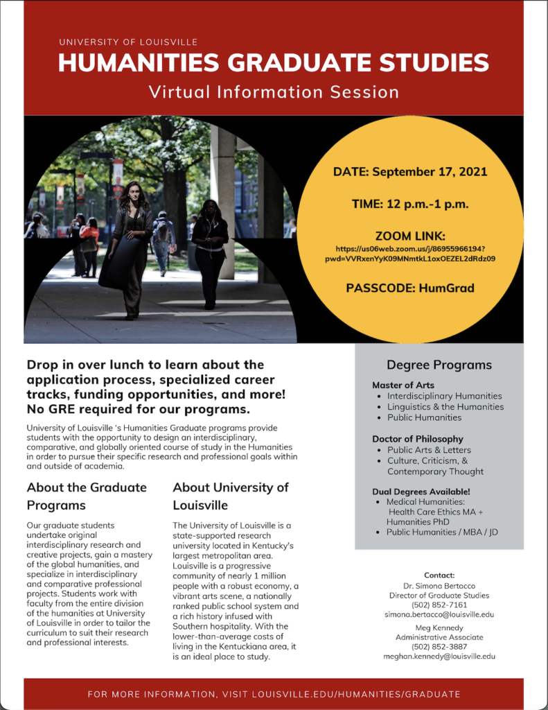 Open this post for more information about University of Louisville’s M.A. and P.h.D. Programs in Humanities