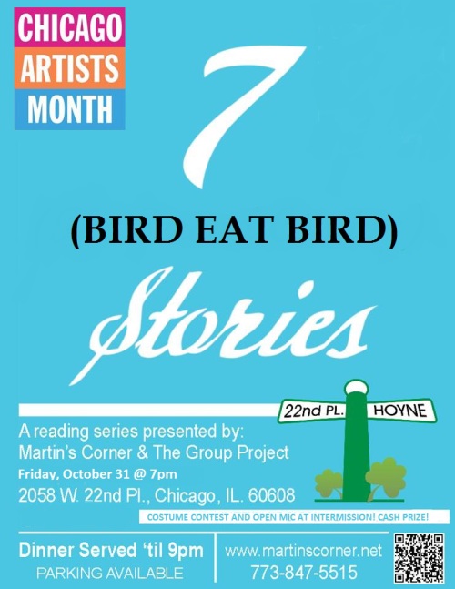 On Friday, October 31, story aficionados can celebrate Halloween with 7 Stories: Bird Eat Bird at Martinʼs Corner Bar in Pilsen (2056 West 22nd Place). Doors open at 7 p.m. and the show starts at 9 p.m.  What to Expect: Emerging writers share their stories in collaborative performances that incorporate live music and visual projection. During intermission, audience members can come onstage to tell brief unscripted stories and compete for free beer. There will also be a costume contest with a cash prize. Though the event is free, cash donations are appreciated. How to Get There: Take the Damen bus (#50) or get off at the Damen-Cermak Pink… Read Article →